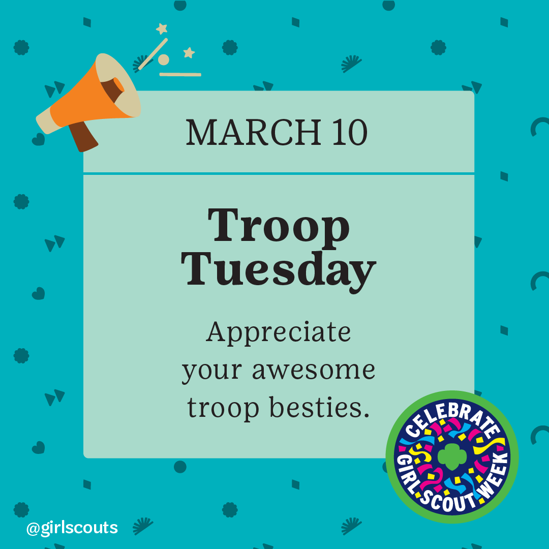 Girl Scout Week is a time when we shout our Girl Scout pride from the rooftops! It’s also a time when many troops celebrate the connections between Girl Scouting and their faith, learn more about other faiths, and thank faith partners for their support throughout the year. Girls can join in the festivities on three specially designated dates (or a day of your choosing):